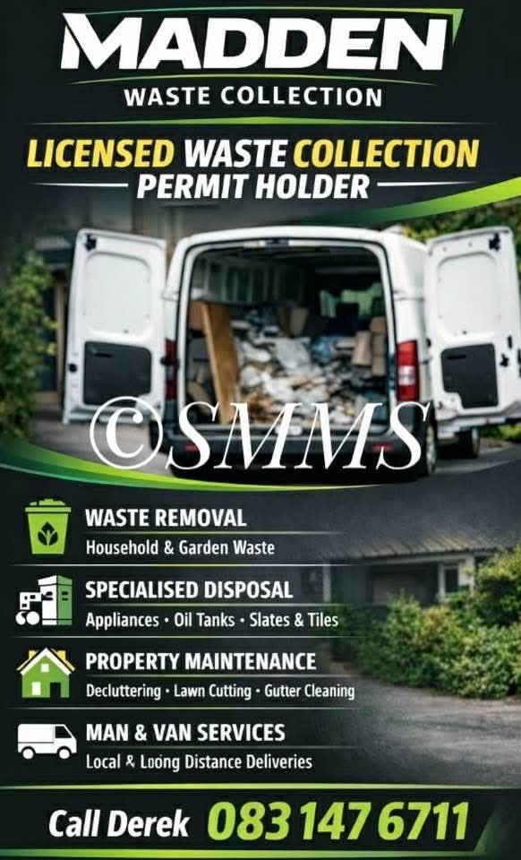 If you use Madden Waste Disposal to take away your rubbish, you wont have to do the work yourself and you won't have to have a skip parked outside your home or business premises for days on end. Your home or premises will be also left in a clean and tidy state, with you having to pay less money also for the privilege.
